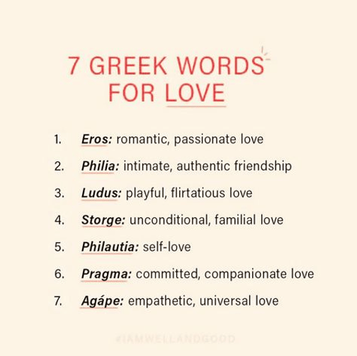 One of our problems here in the UK, is that we only have one word for love and, a bit like respect, it has multiple meanings. In Greek however, they have seven!