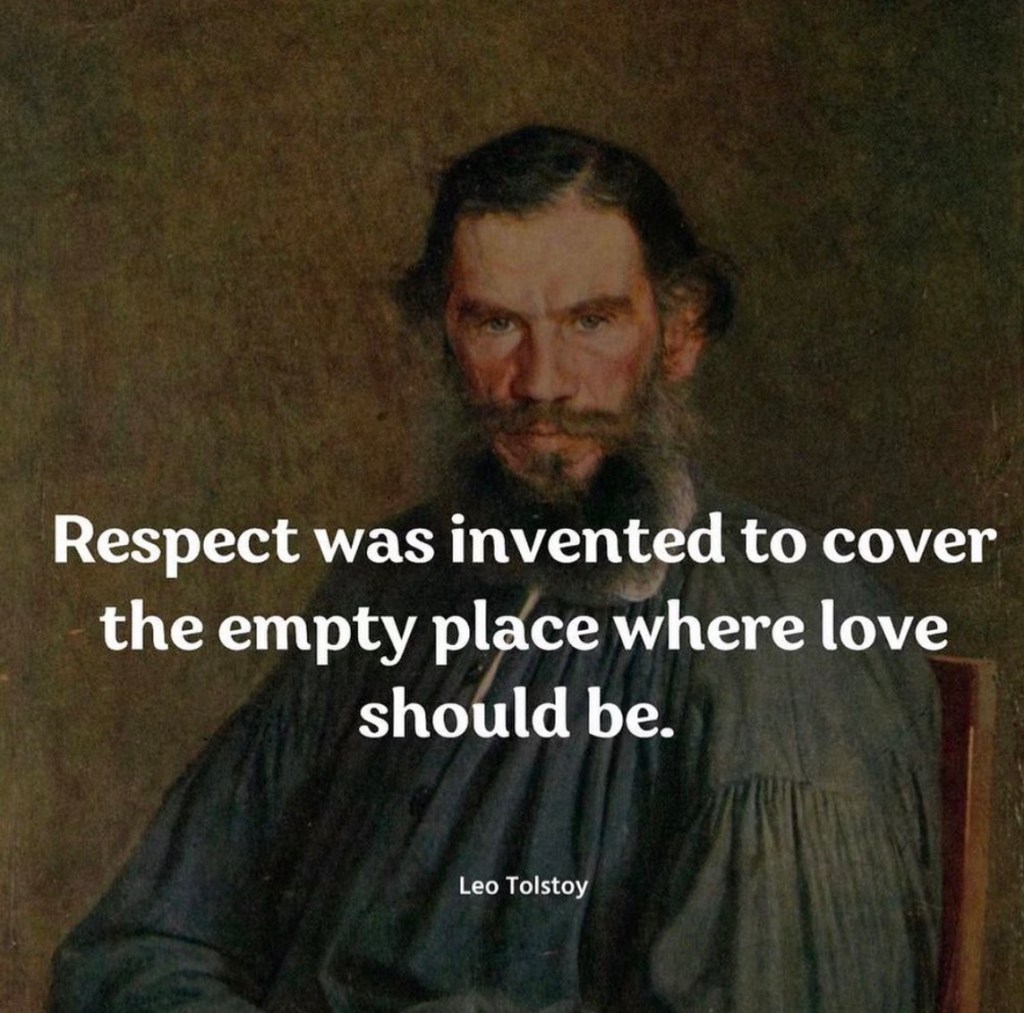 But there is a Tolstoy quote that has always resonated with me. ‘Respect was invented to cover the empty space where love should be.’