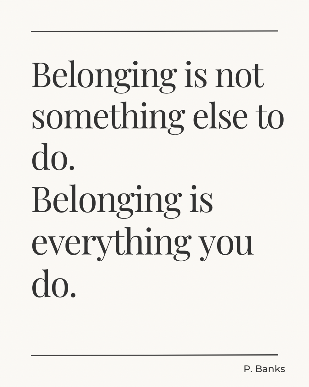 Belonging is not something else for us to do, it is everything we do. Use language deliberately to establish and maintain relationships. Use the collective language of us, we, team to establish shared ownership, and value the contribution of the individual to establish significance. A strong sense of belonging is earned over months, but lost in seconds. Choose your language carefully and be the first to apologise when you get it wrong.
