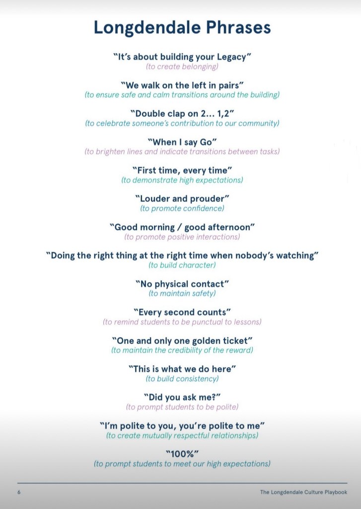 I was struck by a post on Linked In recently from Michael Chiles, Headteacher at Longendale High school. In it, he shared the key, consistent phrases that underpin their daily routines, being clear that school culture is ‘taught, not caught.’ You can see the full list of phrases in the image below, but the one that stood out to me was, “It’s about building your legacy.” What a great phrase to ensure children are thinking about their lasting impact on the school community.